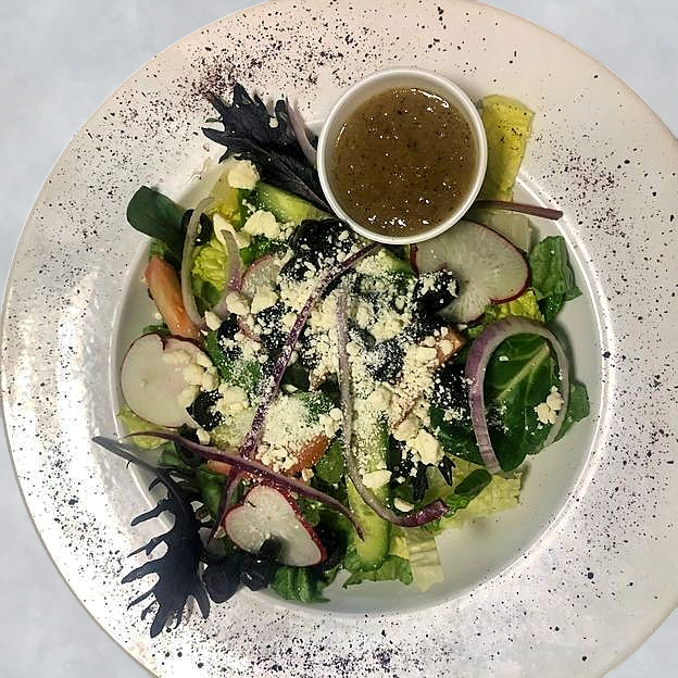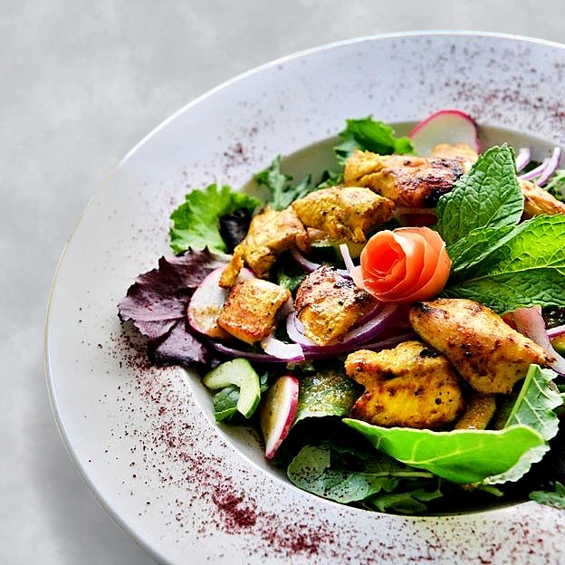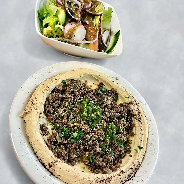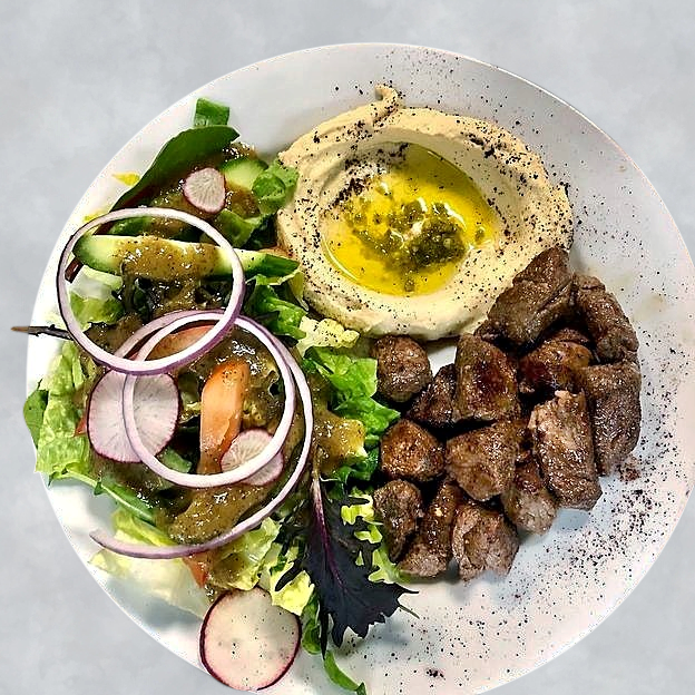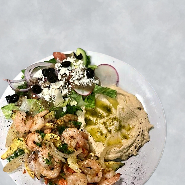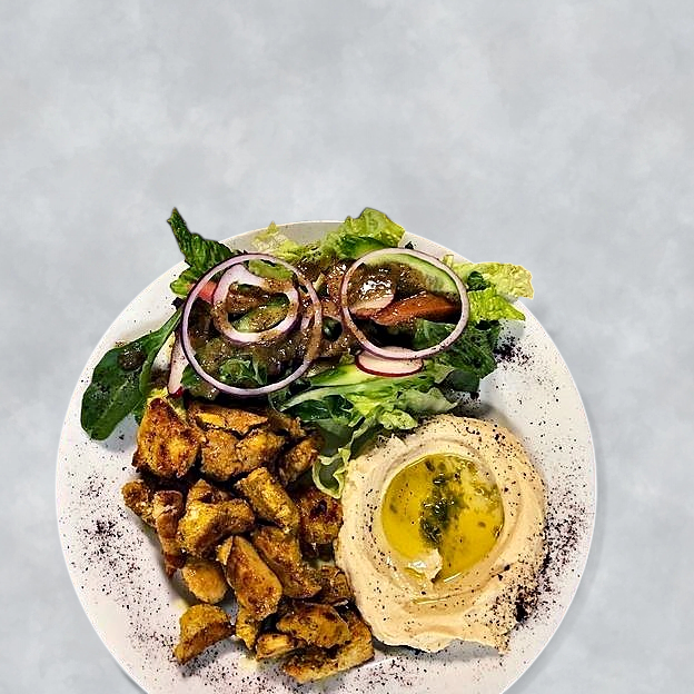 Green salad topped with choice of chicken kabob or shawarma, gyro, beef kabob or shawarma, shrimp or lamb kabob.