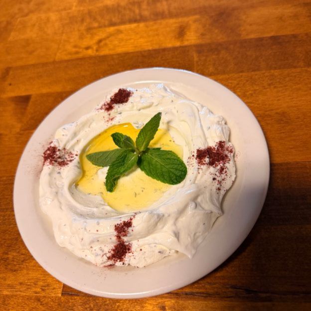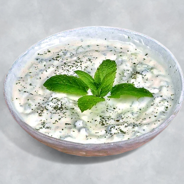 Yogurt, chopped cucumber and crushed mint.