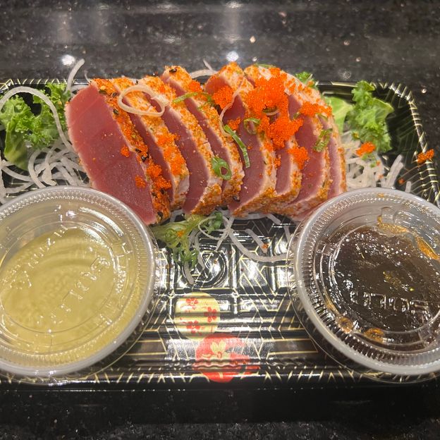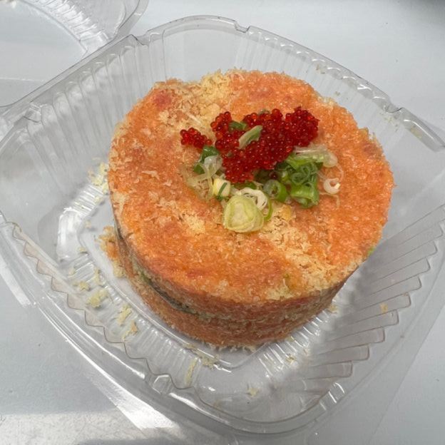 Spicy tuna, tobiko, scallion, on top of scallion pancake