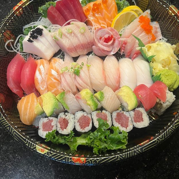 4 pieces nigiri, 8 pieces sashimi and salmon avocado roll. Served with miso soup.