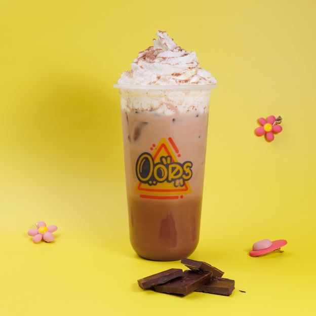 A yummy chocolate milk tea with a fluffy layer of whipped cream on top. It’s sweet, creamy, and super chocolaty – the perfect treat for chocolate lovers!
