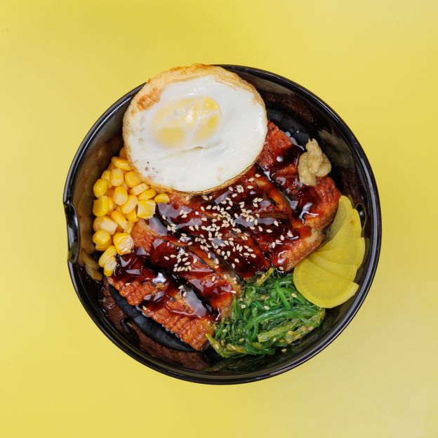 What's inside: White rice, torched eel, eel sauce, corn, romaine lettuce, yellow raddish, sesame & fried egg!