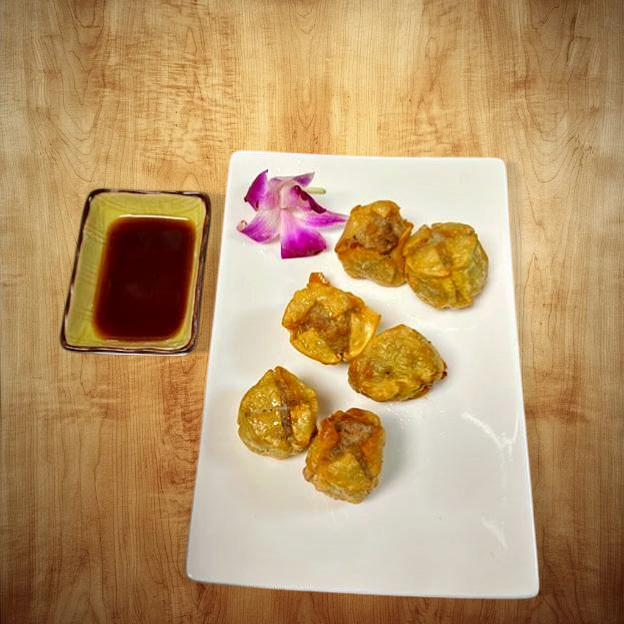 Crispy wonton wrap stuffed with krabmeat, cream cheese, onion, scallion. Served with thai garlic sauce.