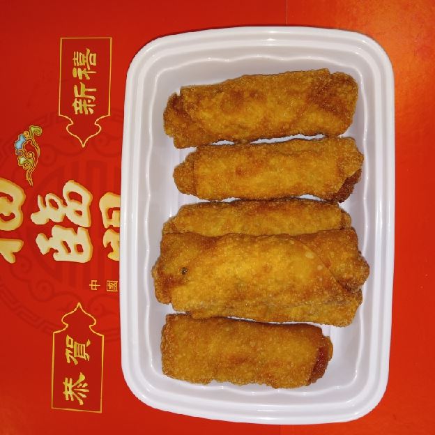Shrimps cabbage and celery wrapped egg-roll wrapper