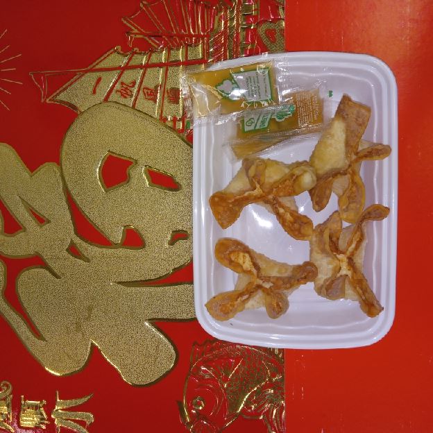 Crispy golden wontons filled with SWEET cream cheese and crab meat