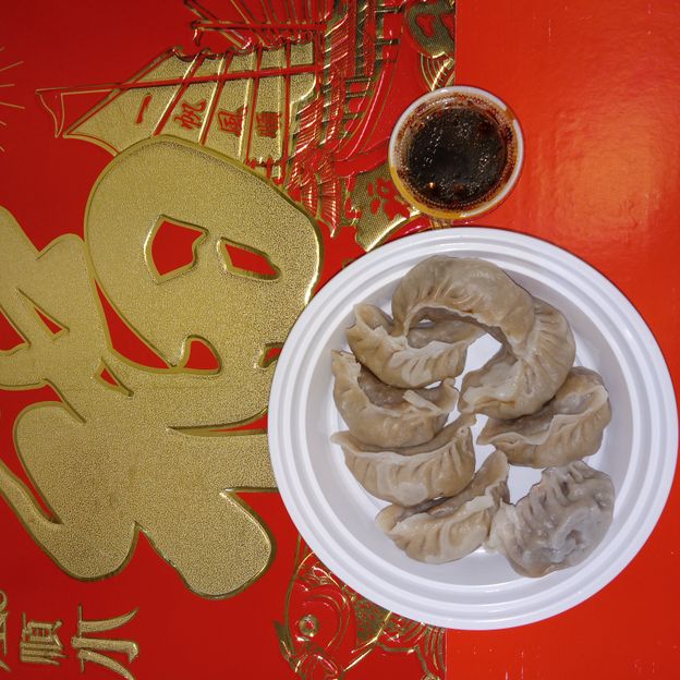Mincemeat of pork with green onion and celery are wrapped dumpling wrapper