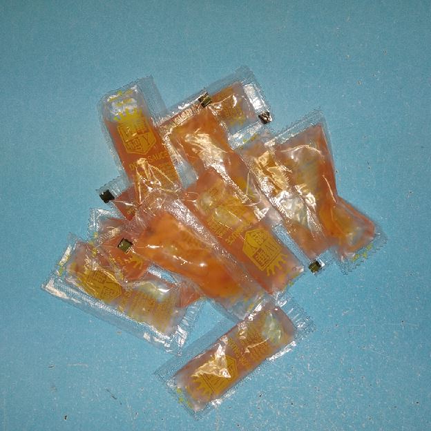 Battered chicken leg in orange flavor special sweet sour sauce ATTENTION:Chicken was harder,if you want it soft tell us .we can make it different way